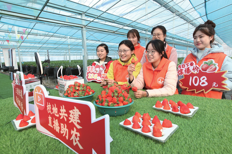 【江苏教育报】江苏HJC黄金城技术学院学生直播销售草莓